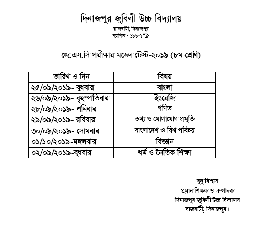 জে.এস.সি- এর মডেল টেস্ট এর সময়সূচি